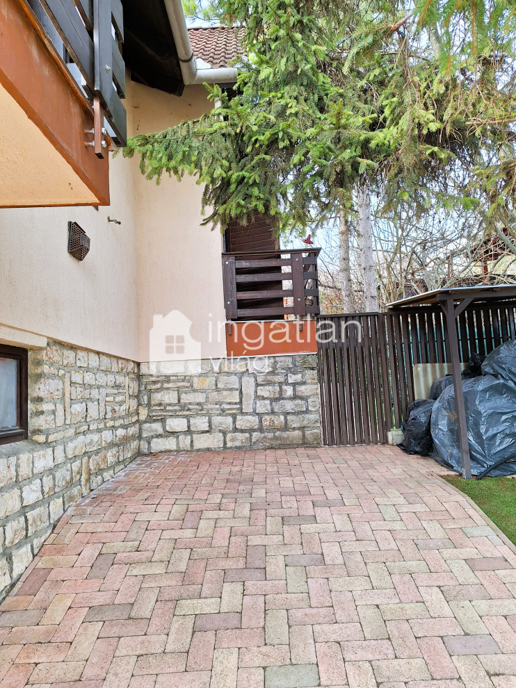A gázfűtéssel is rendelkező külön bejáratú alsó rész a kert felől közelíthető meg.
