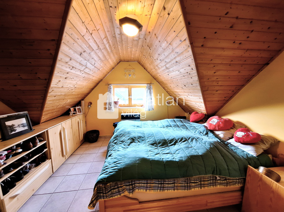 Az emeleti részen kettő hálószoba, fürdőszoba, közlekedő és lépcsőház található.