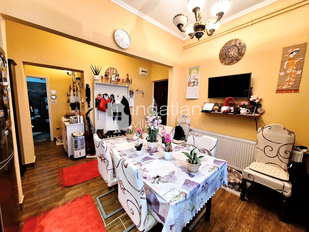 A polgári stílusú, nagy belmagasságú lakásban kettő szoba, konyha-étkező, fürdőszoba és közlekedő található.