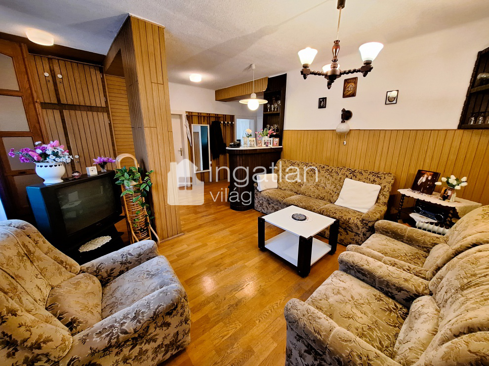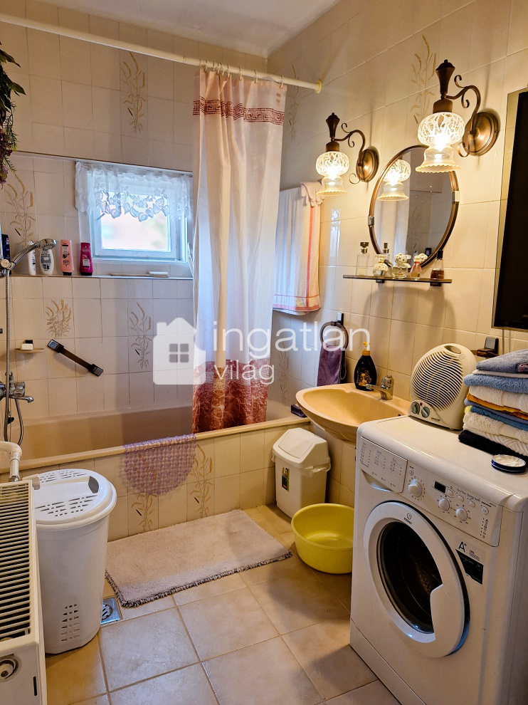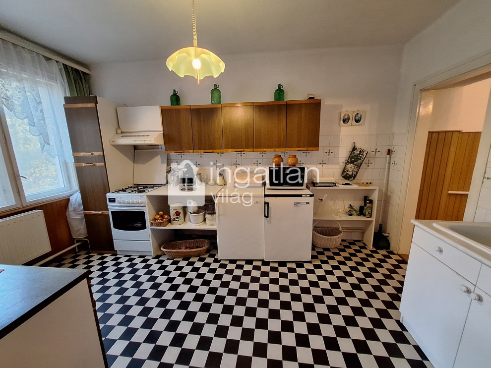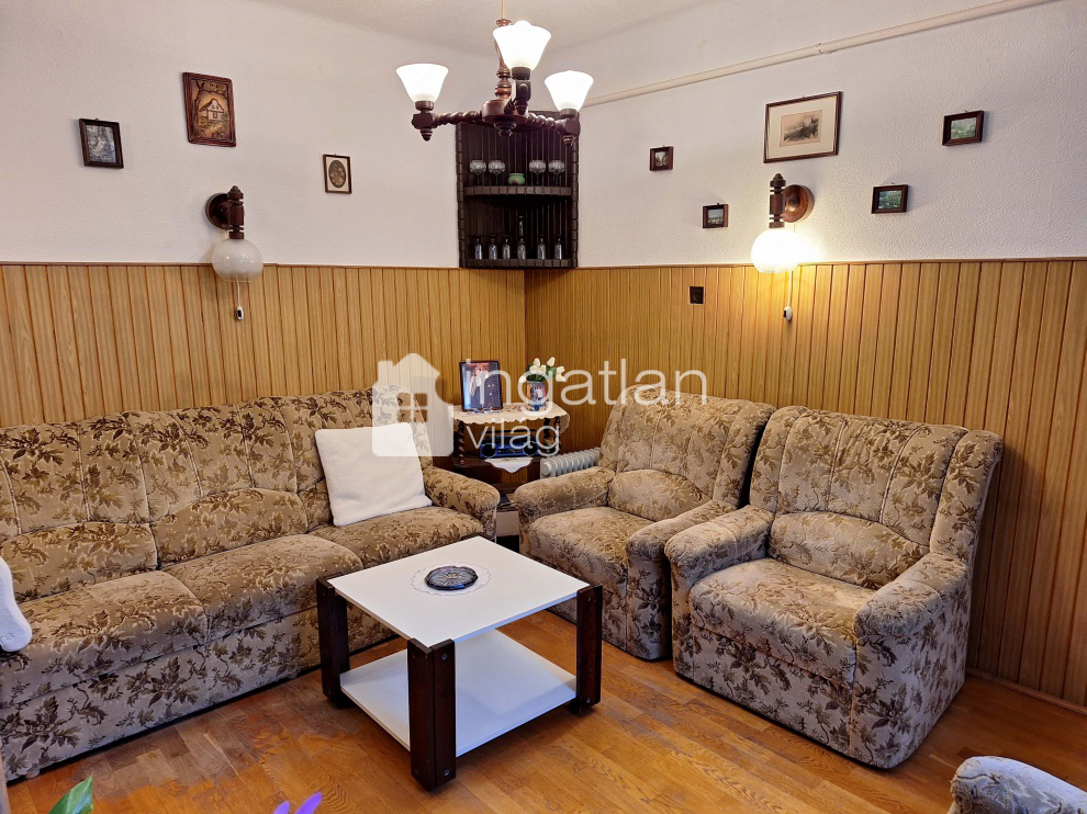 A 60-as években épült, majd a későbbiekben kibővített téglaházban 3 szoba, nagy előtér nappalival, kádas fürdőszoba, konyha, külön étkező és WC található.
