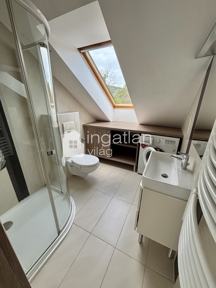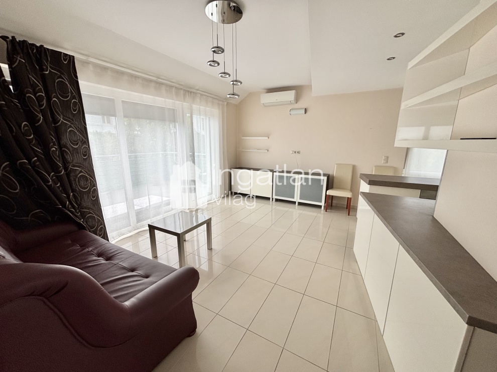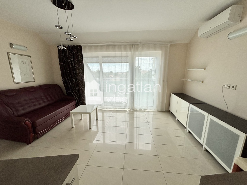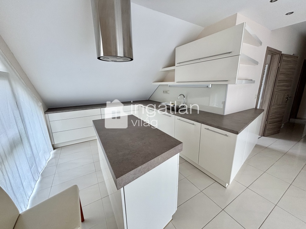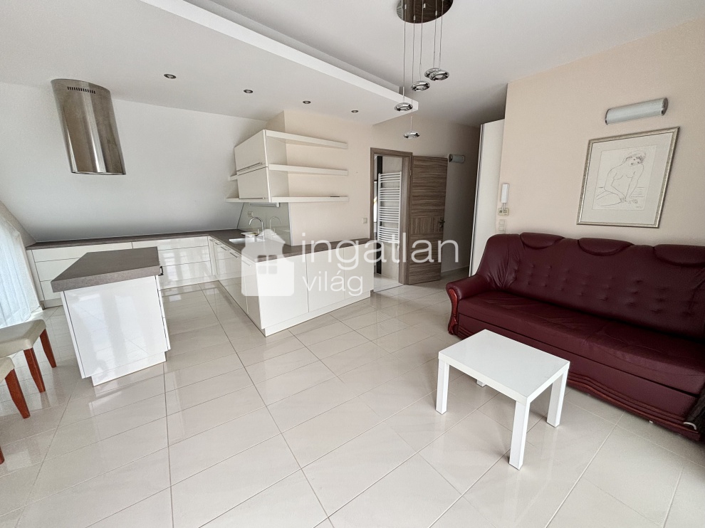 Az ingatlan 2013-ban épület NYOLCLAKÁSOS társasház tetőterében található, az ingatlan alapterülete bruttó 45 nm, melyen előszoba, amerikai konyhás nappali, hálószoba és tusolós fürdőszoba található.