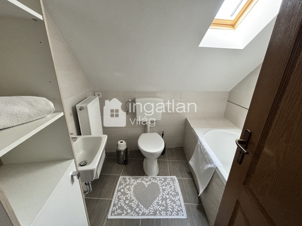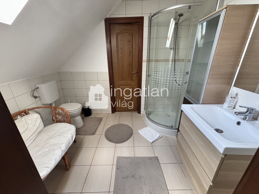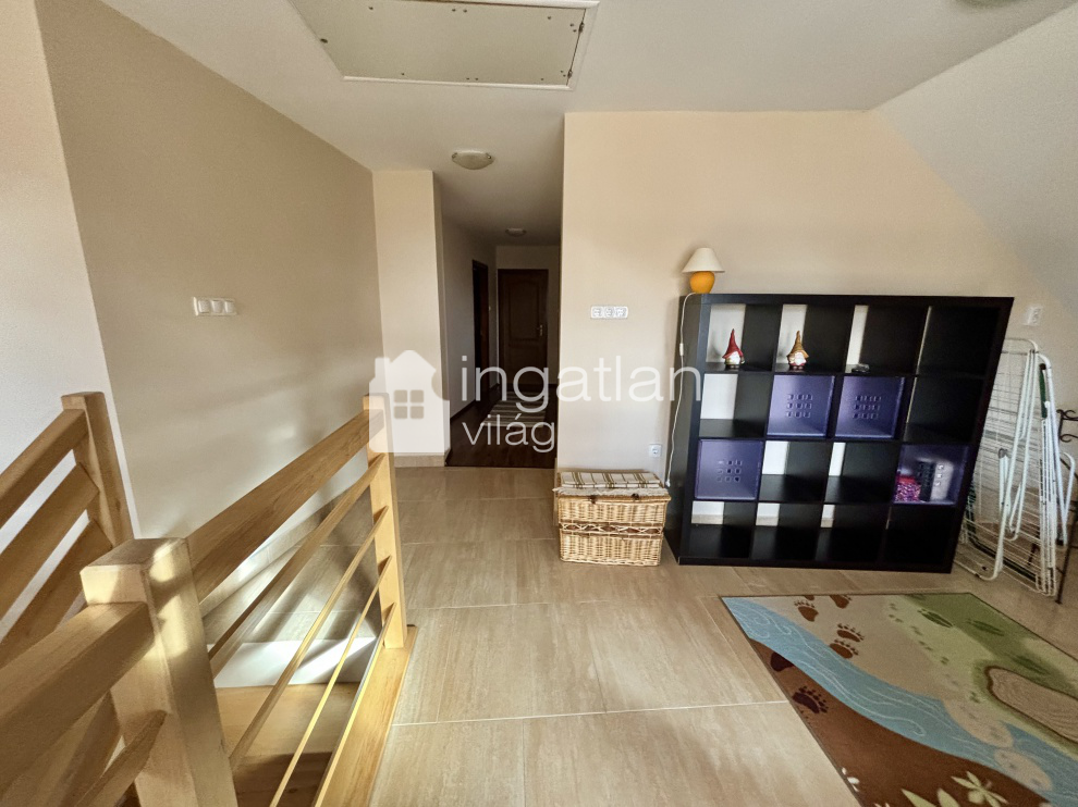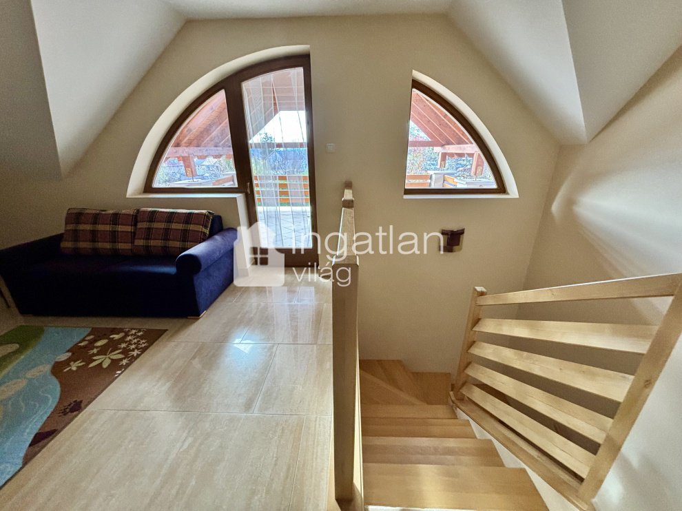 Az emeleten továbbbi 4 TÁGAS szoba, 2 fürdőszoba és egy kisebb nappali került kialakításra, itt egy PANORÁMÁS, FEDETT ERKÉLY is helyet kapott, mely 24 nm nagyságú.