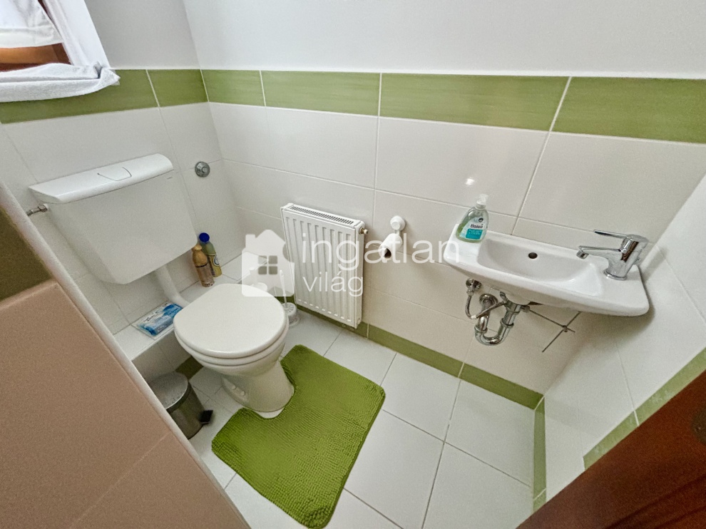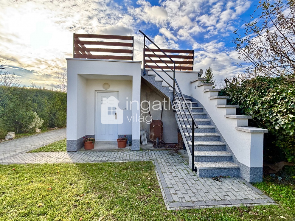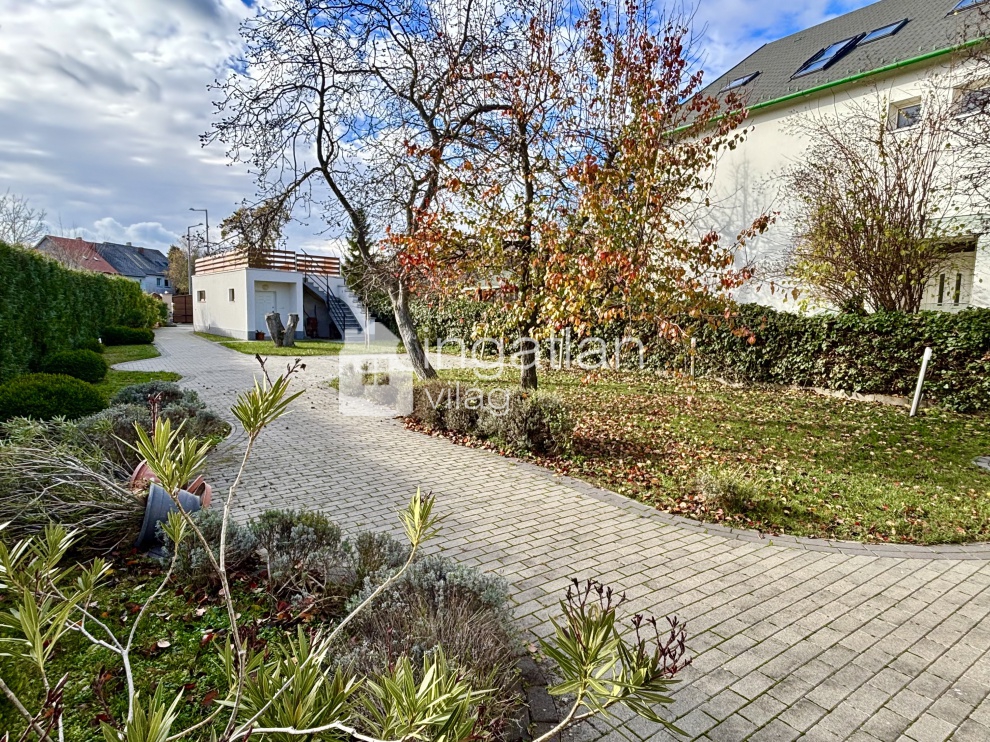 A házhoz tartozó kert gondozott, AUTOMATA ÖNTÖZŐRENDSZERREL ELLÁTOTT.