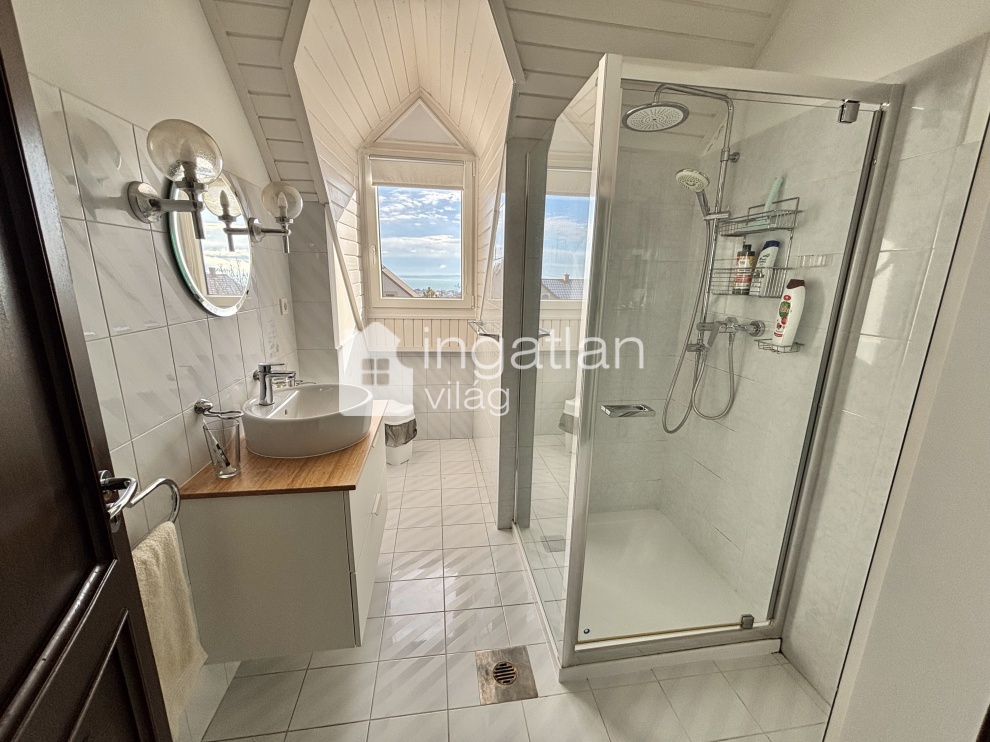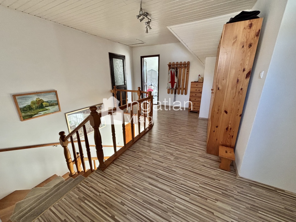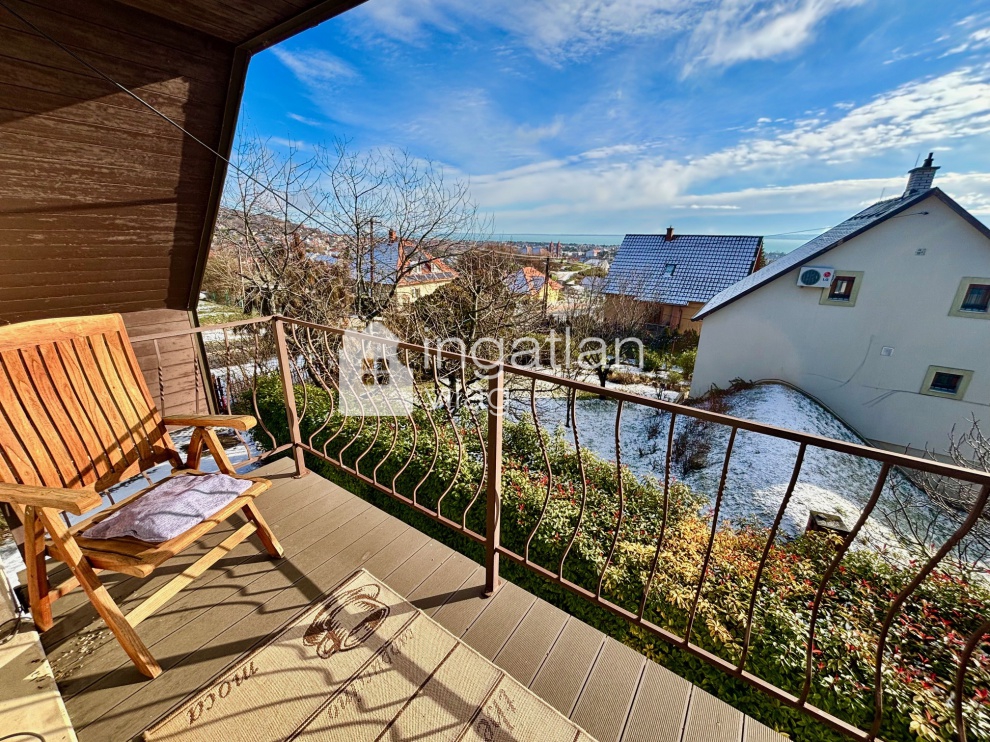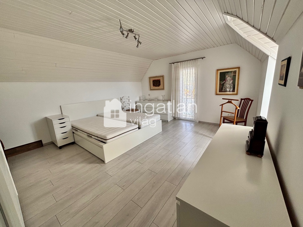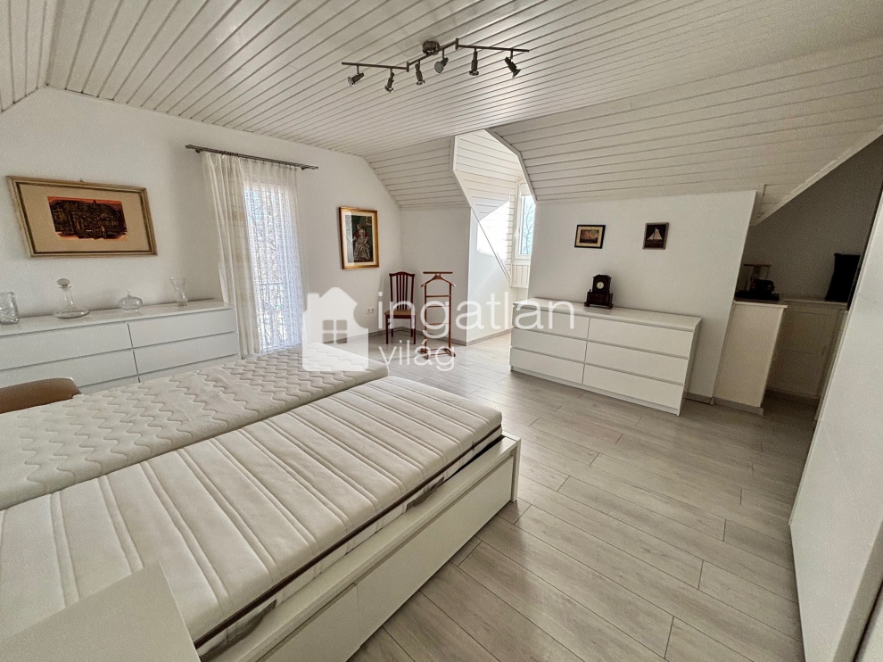Az emeleten további 3 nagyméretű szoba, PANORÁMÁS ERKÉLY, TUSOLÓS FÜRDŐSZOBA, vendég WC, gardrób és mosókonyha kapott helyet.
