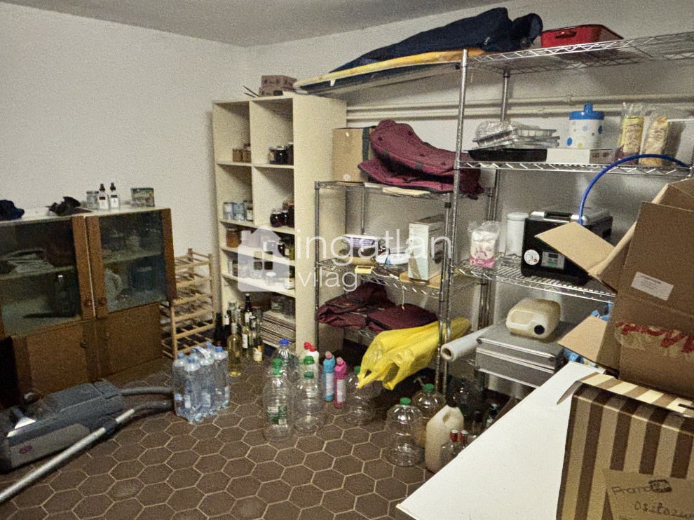 A konyha mellett kamra és egy lejáró található a PINCÉBE, ahol 3 nagyobb TÁROLÓ is kialakításra került.