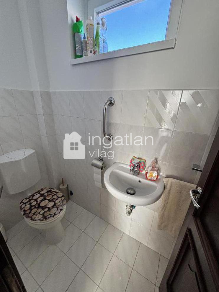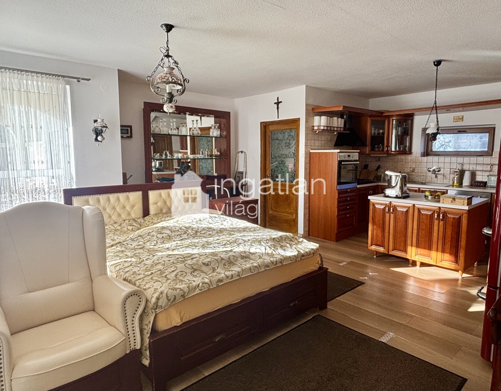 A nappaliban külön elválasztott részben fürdőszoba, vendég WC és hálószoba található, a folyóson BEÉPÍTETT SZEKRÉNY van.