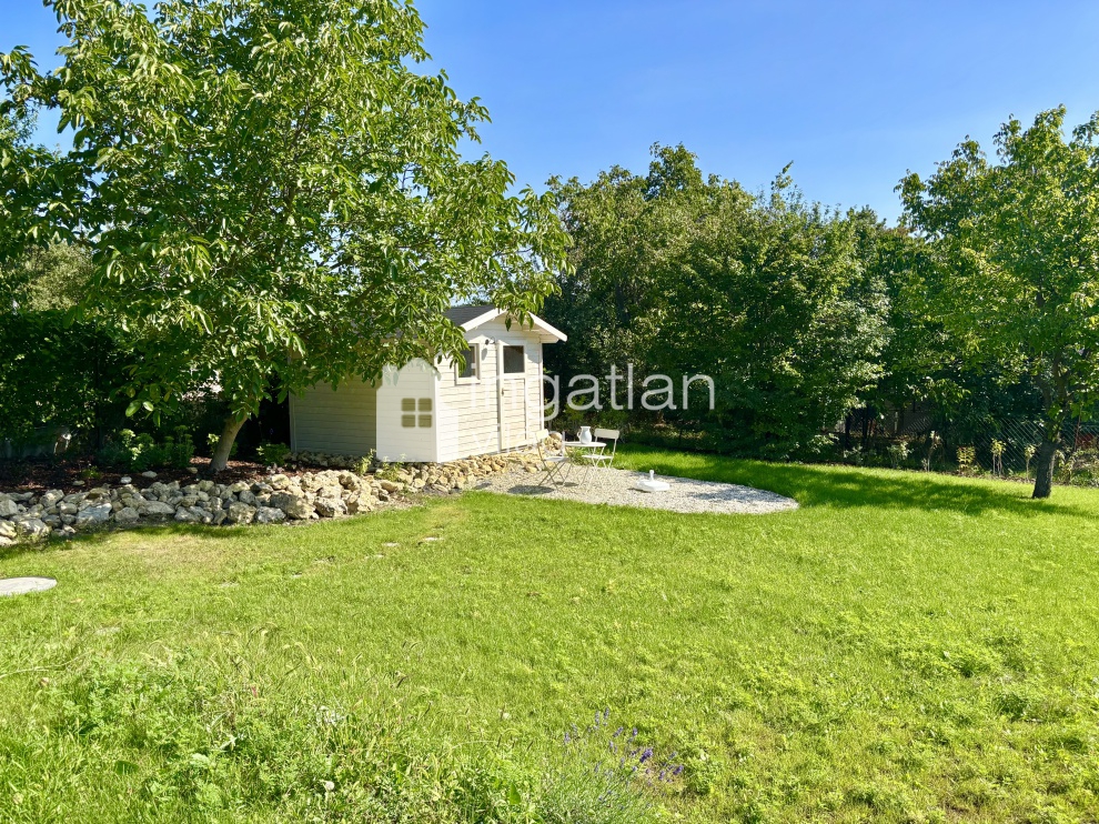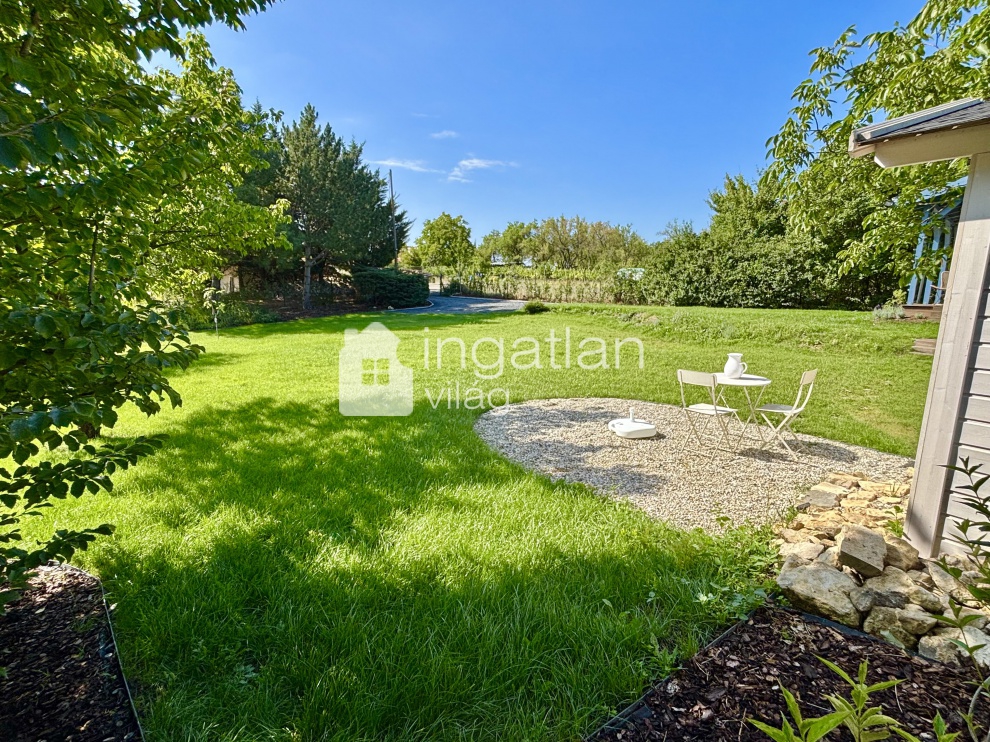 Az 1074 nm nagyságú ZÁRTKERTI, SÍK telek, FÁKKAL, DÍSZNÖVÉNYEKKEL beültetett, AUTOMATA ÖNTÖZŐRENDSZERREL ellátott.