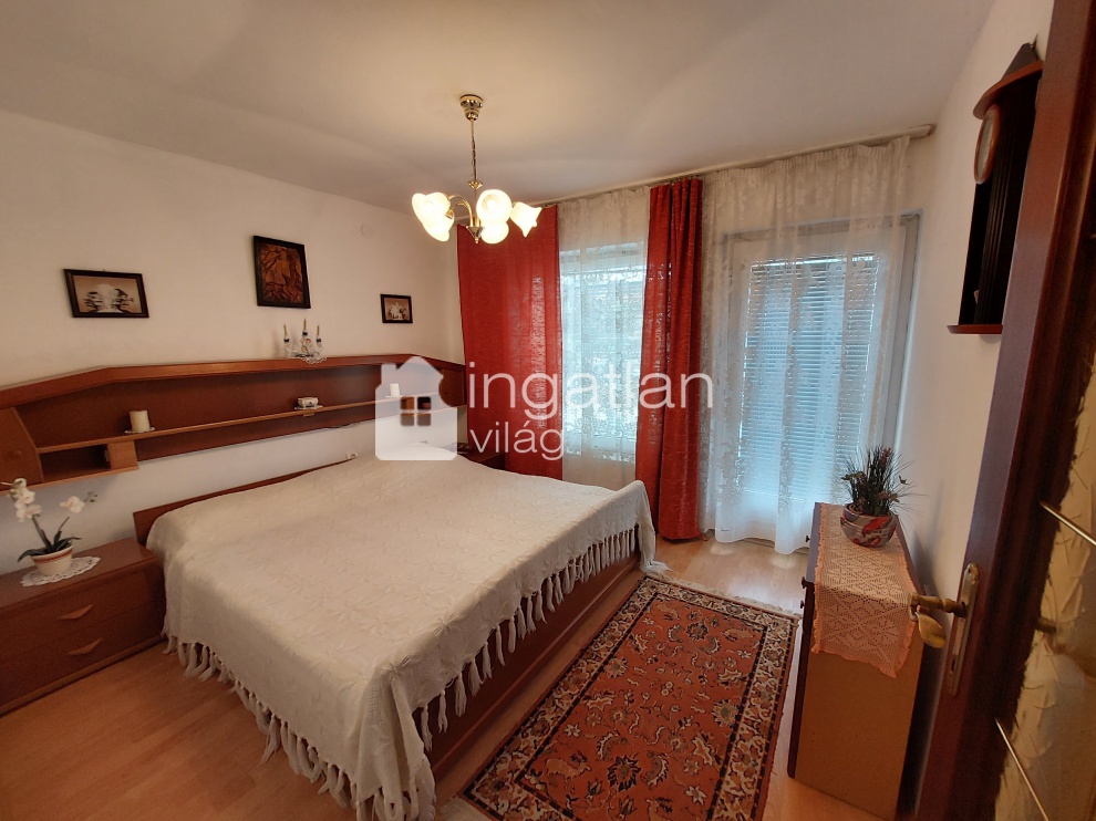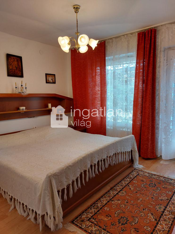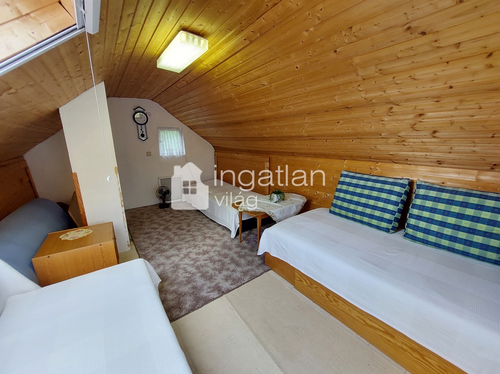 A belterületi telken fekvő ingatlan alsó, szuterén szintjén konyha és hálószoba, a középső szinten 2 szoba, közlekedő és fürdőszoba, míg a beépített tetőtéri részen egy légterű hálószoba került kialakításra.
