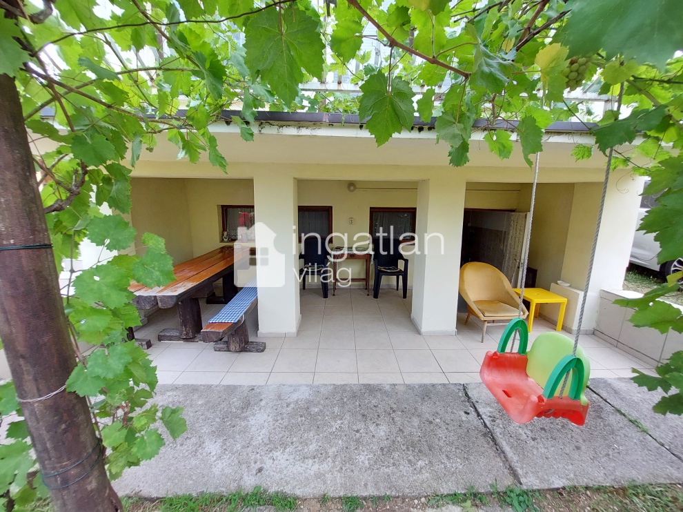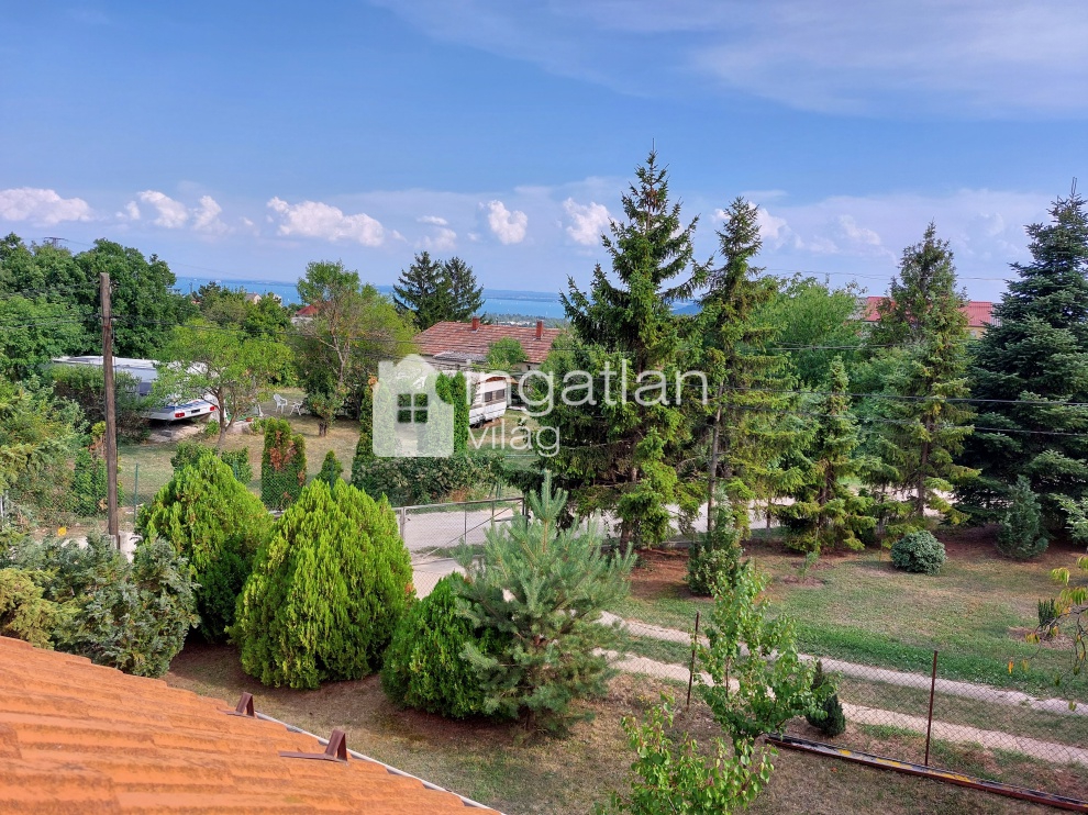 A 443 nm nagyságú saroktelek gyümölcsfákkal van beültetve, az emeletről kilátás nyílik a Balatonra.