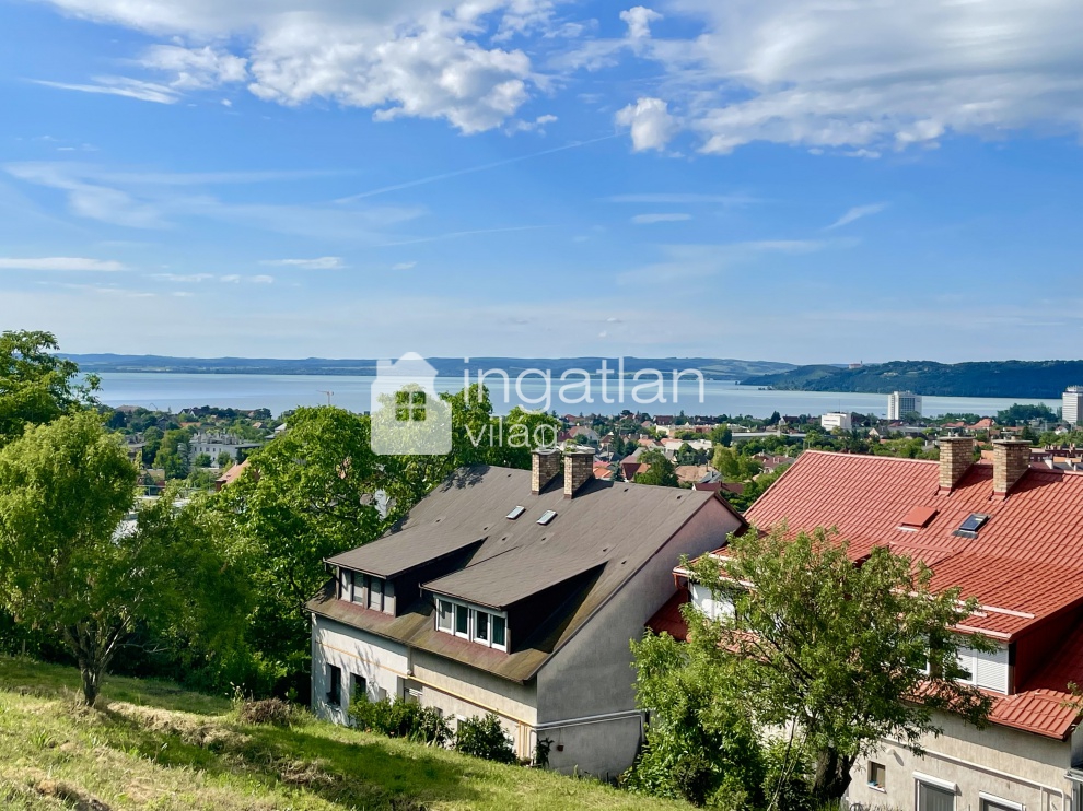 Az ingatlan 1225 nm nagyságú, melynek 20 %-a beépíthető, azaz 245 nm, építménymagasság 4,5 M. A telekről csodálatos PANORÁMA nyílik a Tihanyi-félszigetre és a Balatonra.
