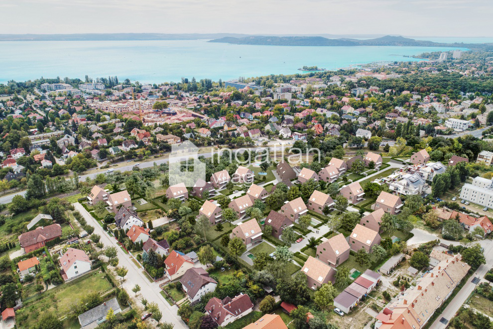 A lejtős területre megálmodott ingatlanok többségéből balatoni panorámát is élvezhetnek az új lakók.