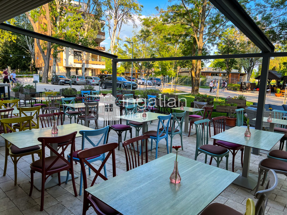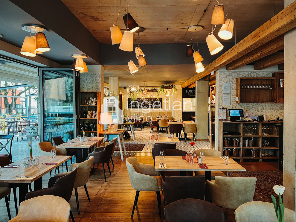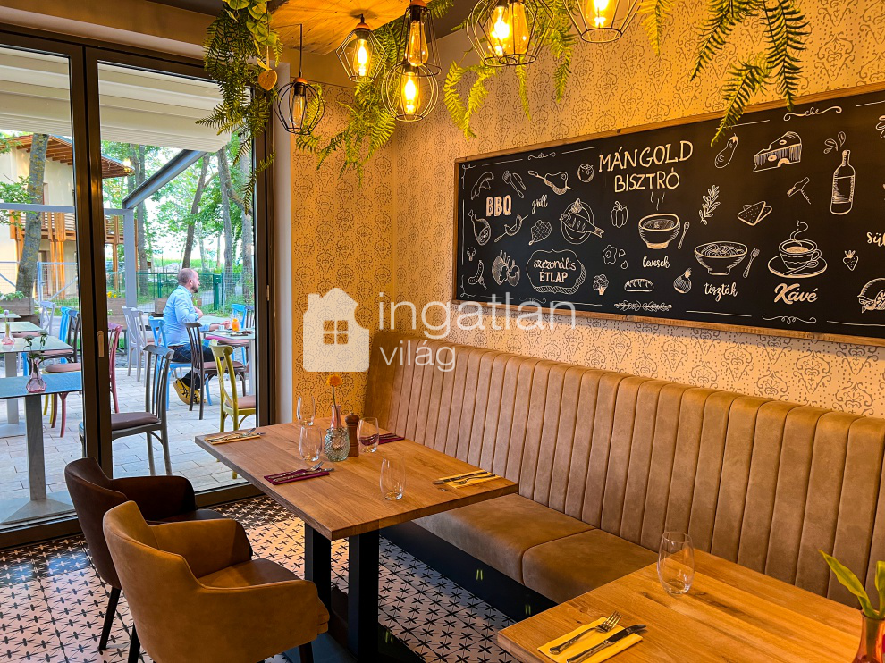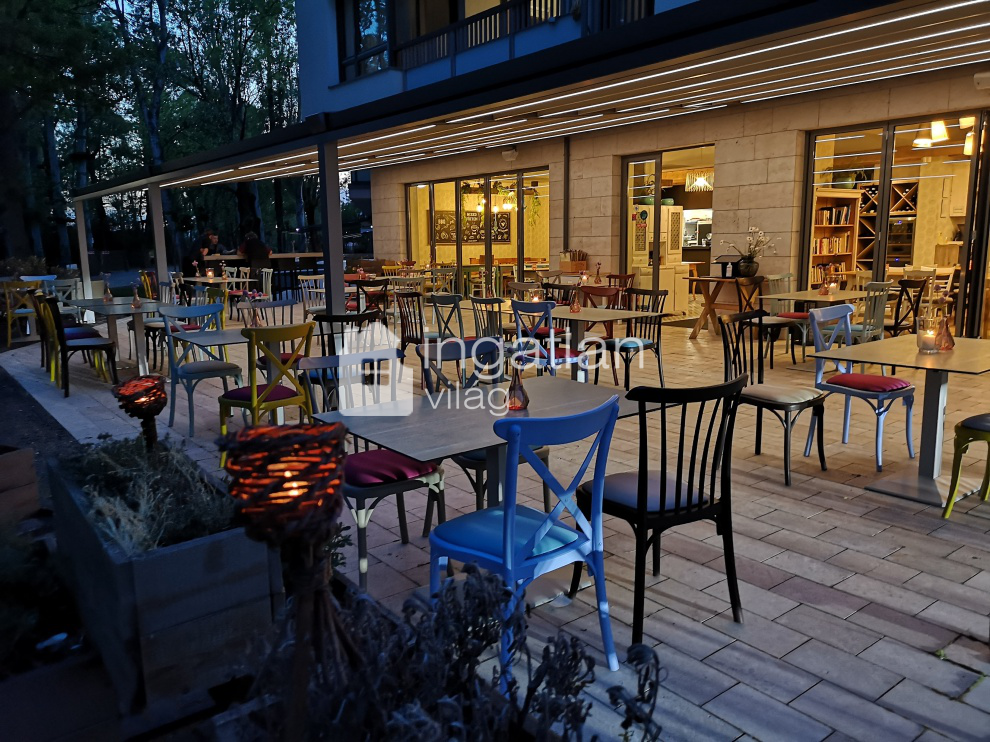 Az összesen 180 fő befogadására alkalmas üzlet a nagy méretű terasz mellett kellő belső teret is biztosít, így akár egész éves üzemeltetésben is gondolkozhatunk.
