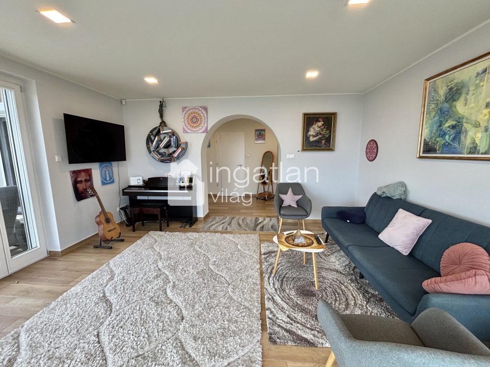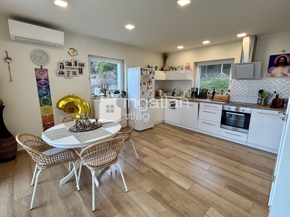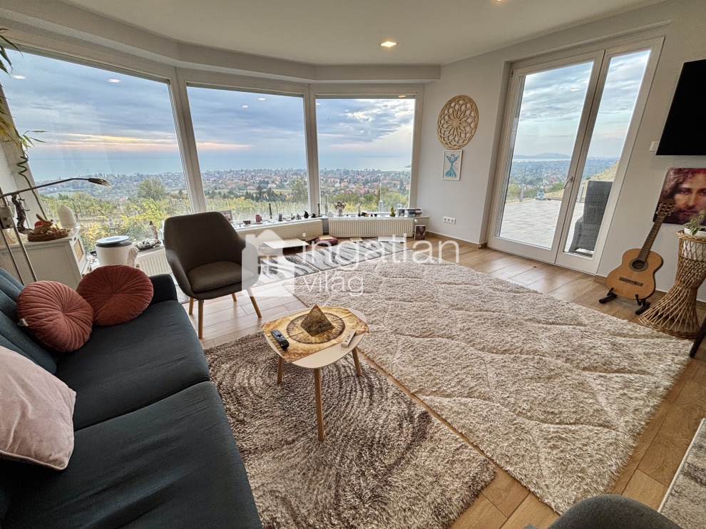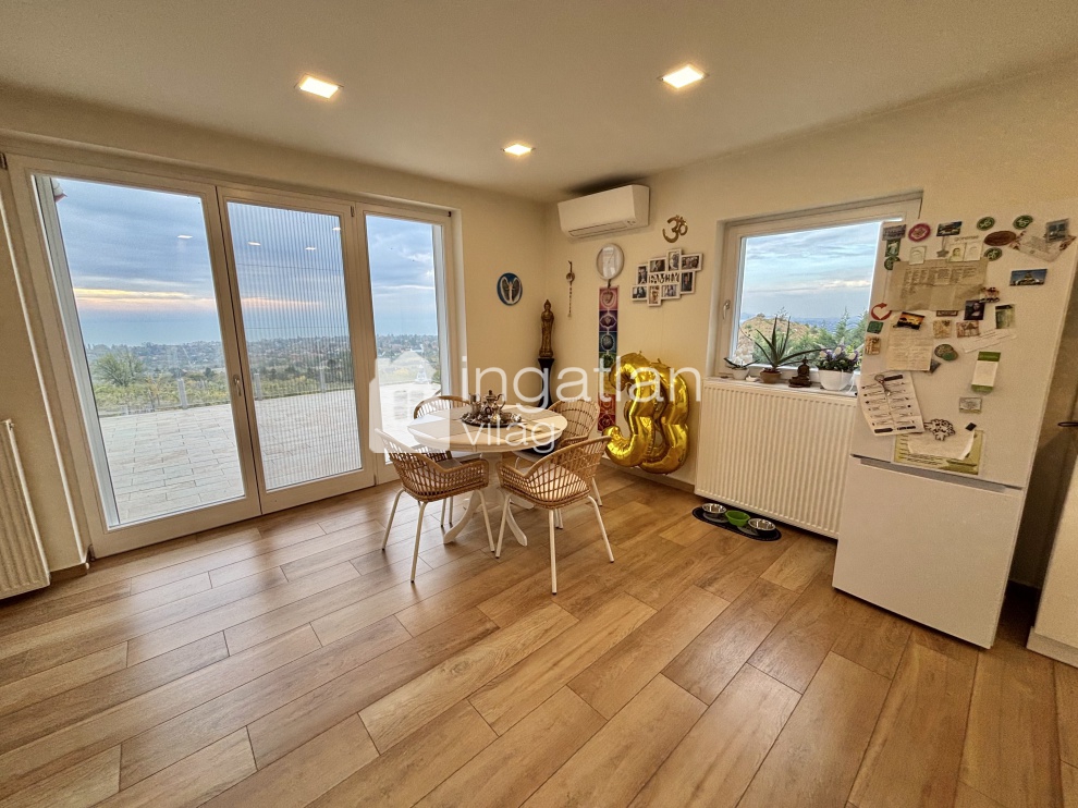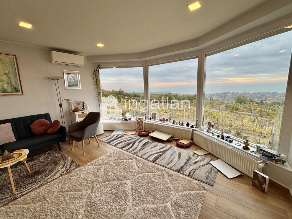 A telek felső részén kapott helyett a 2019-ben TELJESKÖRŰEN FELÚJÍTOTT ház, mely minden pontjáról PANORÁMÁS.