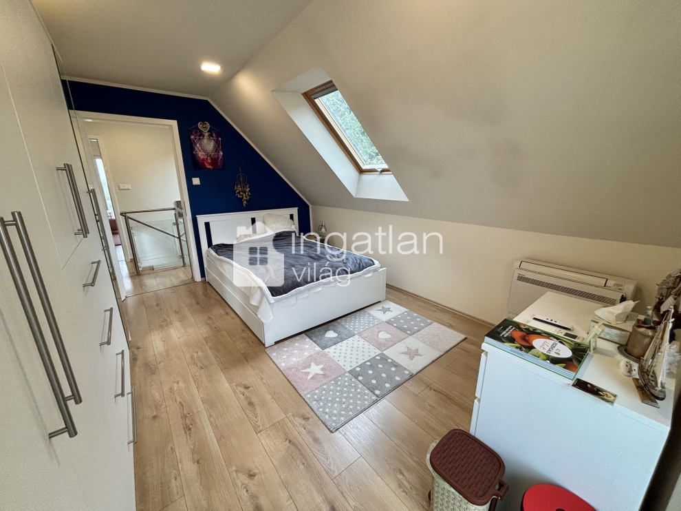 Az emelet lakóterülete bruttó 64 nm, nettó 45 nm, itt három TÁGAS szoba és egy fürdőszoba kapott helyet.