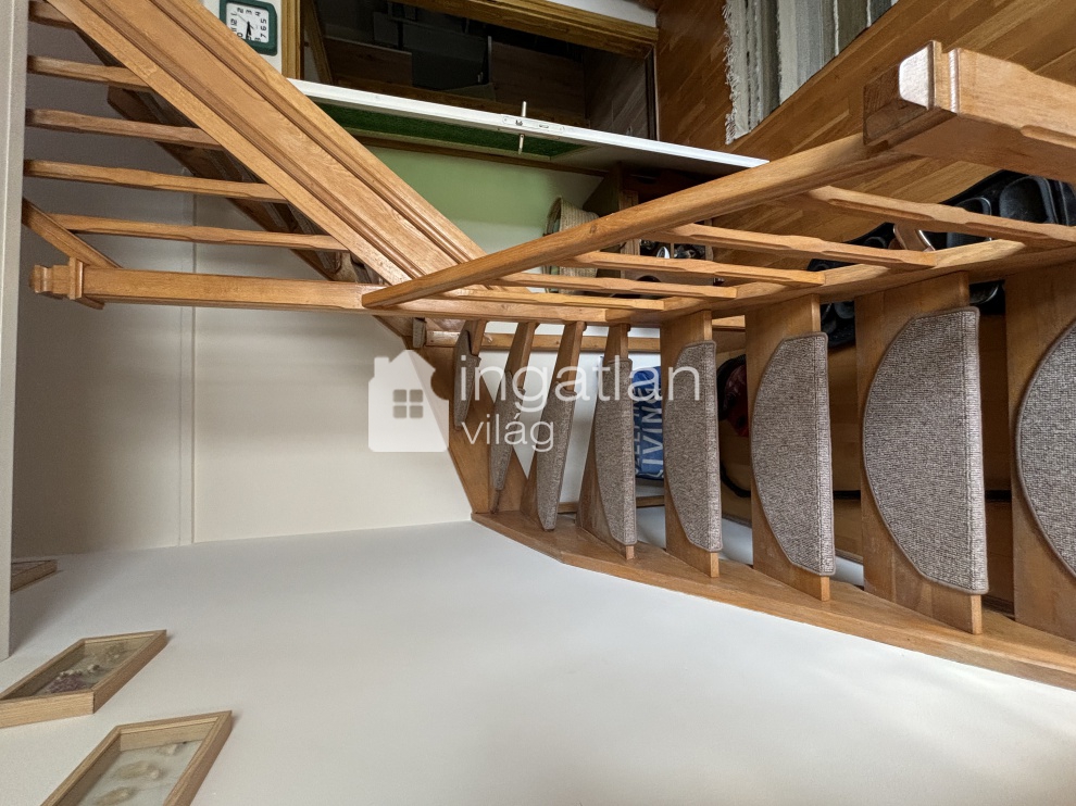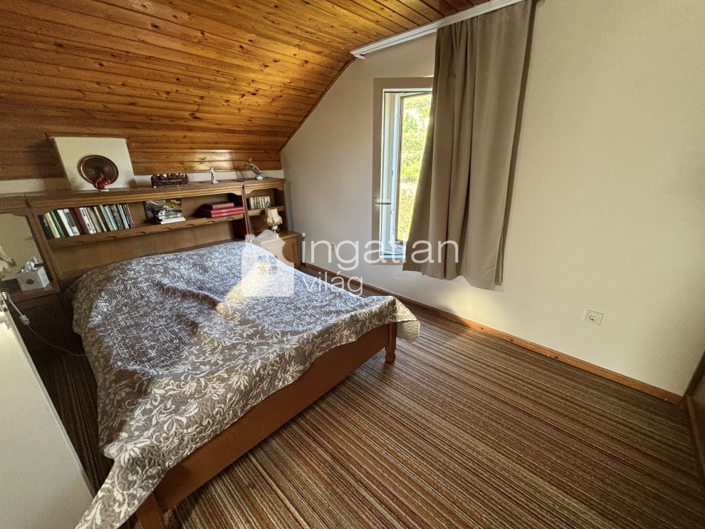 A ház alsó szintje PINCE, mely kőből épült, a téglaépítésű első emeleten nappali, konyha és fürdőszoba kapott helyet, a tetőtérben 2 kellemes méretű HÁLÓSZOBA került kialakításra.