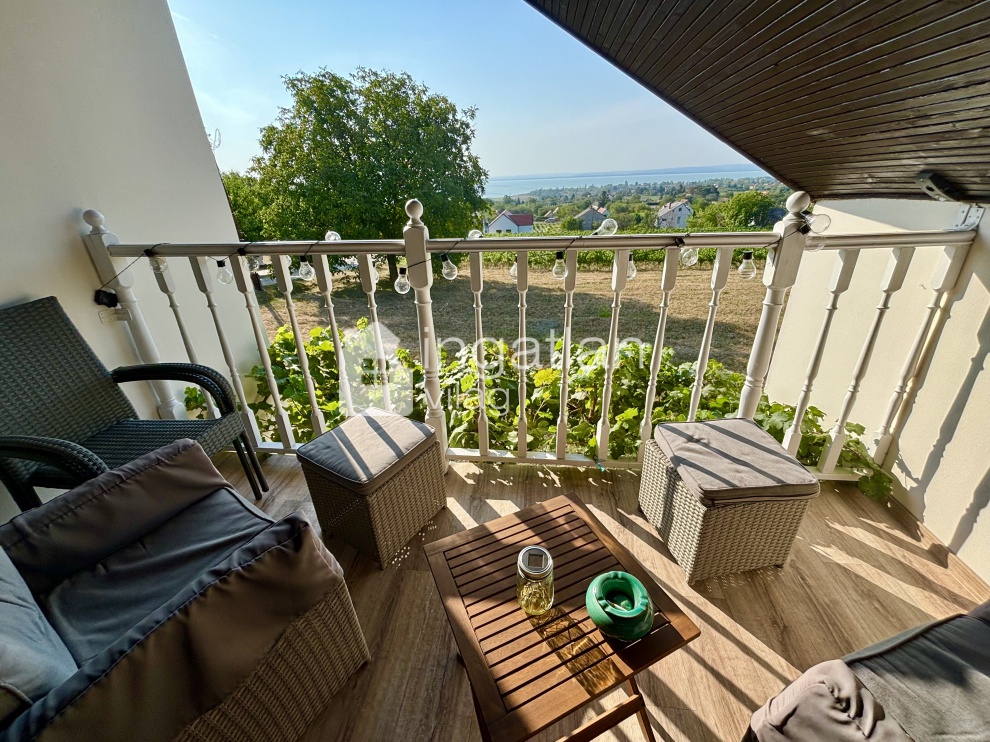 Mind a földszintről, mind az emeletről CSODÁLATOS PANORÁMA nyílik a Balatonra és a Tihanyi- félszigetre.