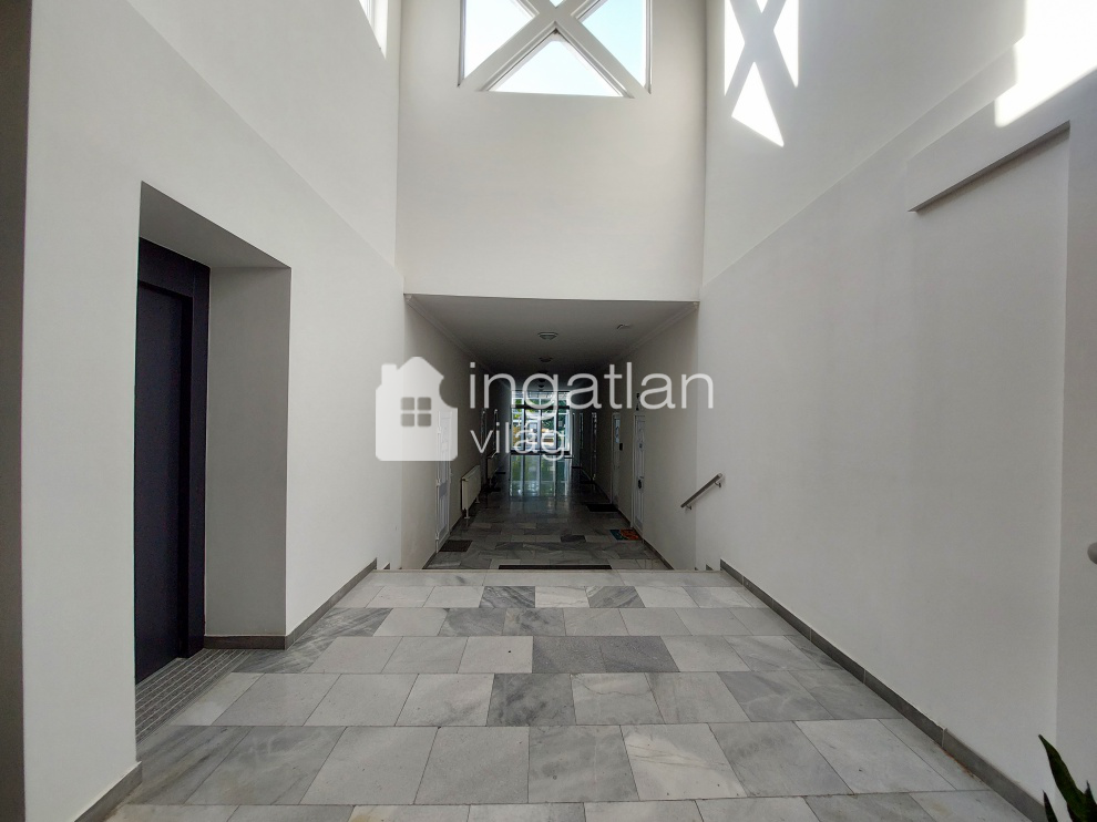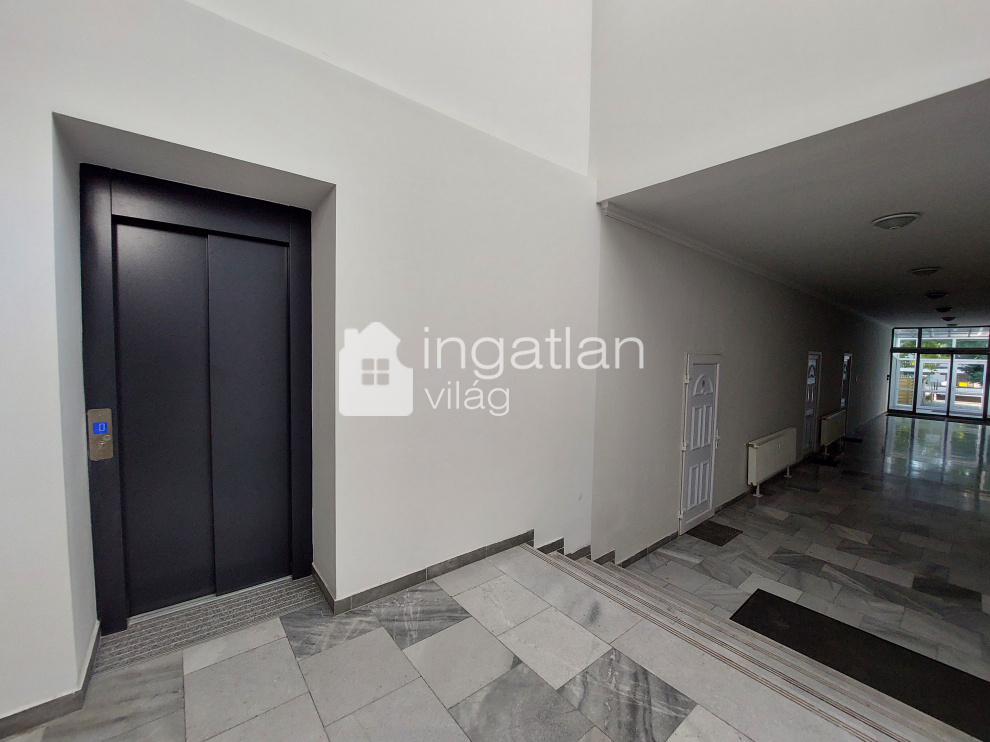 A legfelső szinten kialakított 55 nm nagyságú lakás megközelítésére, egyedüliként a társasházban saját használatú lift került beépítésre.