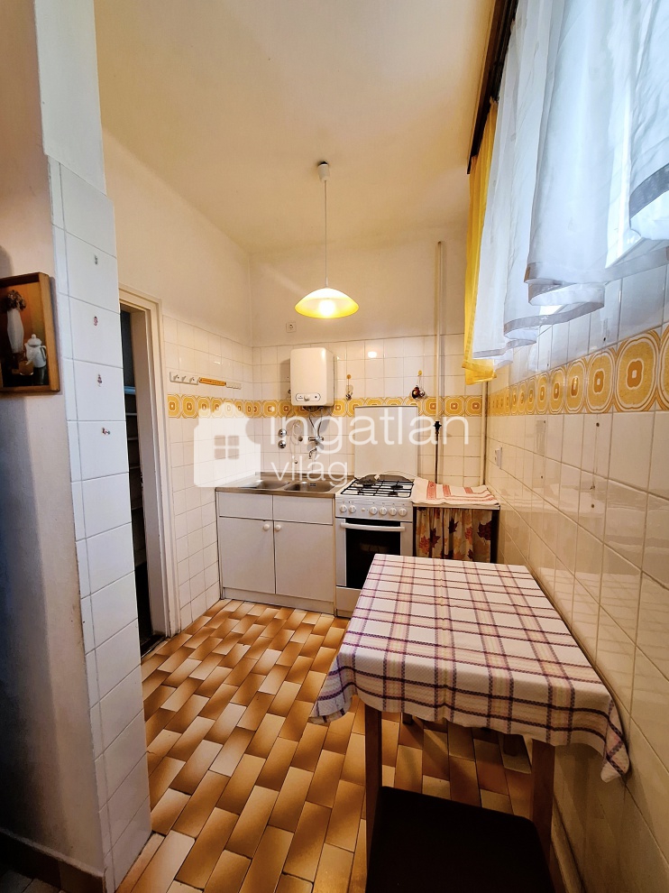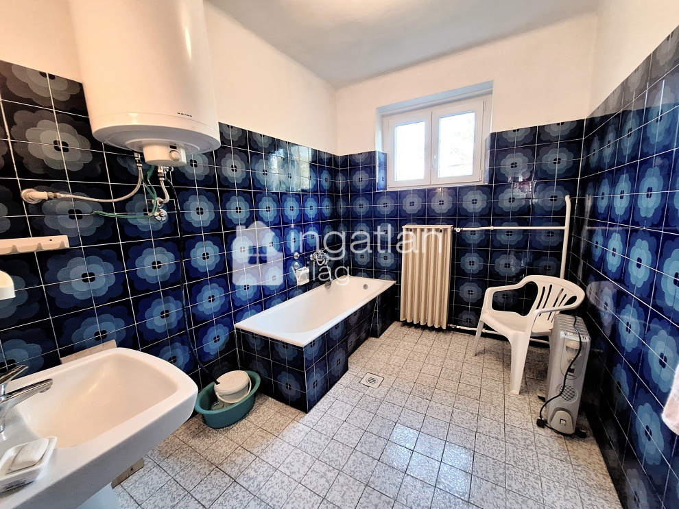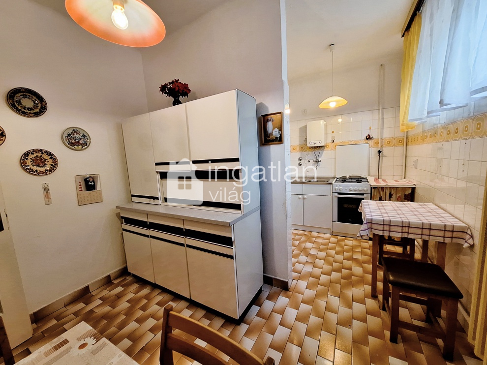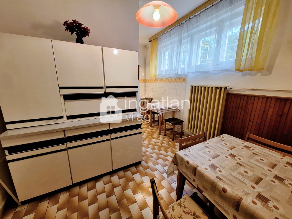 A 70'-es években épült ingatlan alsó szintjén tágas szoba, konyha-étkező, fürdőszoba, közlekedő, lépcsőház és garázs lett kialakítva.