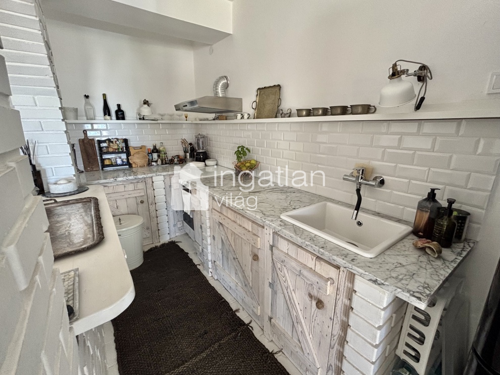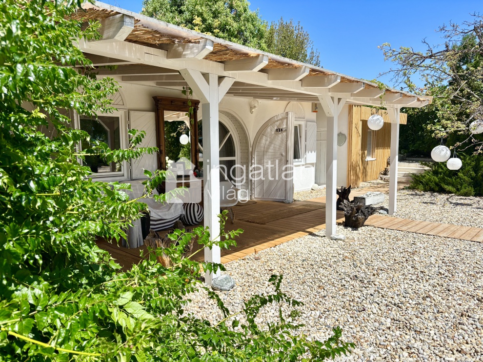 A telken elhelyezkedő nyaraló TELJES FELÚJÍTÁSON esett át, IGÉNYES, PÁRATLAN megoldásokkal. A nyaraló lakóterülete bruttó 101 nm.