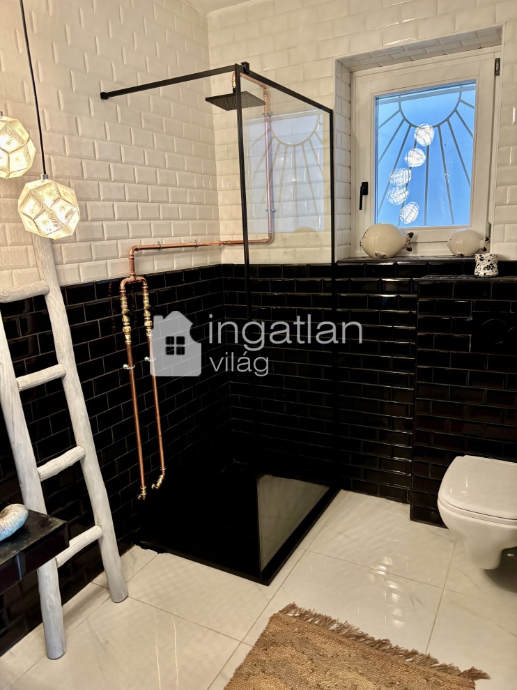 A 52 nm nagyságú AMERIKAI KONYHÁS NAPPALI tágas és világos. A CSODÁLATOS PANORÁMÁVAL rendelkező HÁLÓSZOBA mögött a régi PINCÉBŐL kialakított SZOBA kapott helyet, emelett a házban KÁDAS fürdőszoba is található. Az ingatlan melletti közlekedőből nyílik a KÜLÖN BEJÁRATÚ, 15 nm nagyságú VENDÉGSZOBA, mely mellett egy VENDÉG WC is kialakításra került.