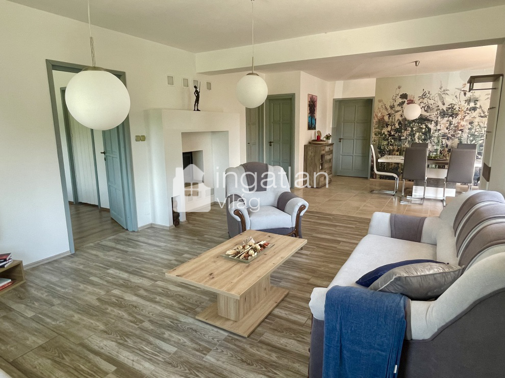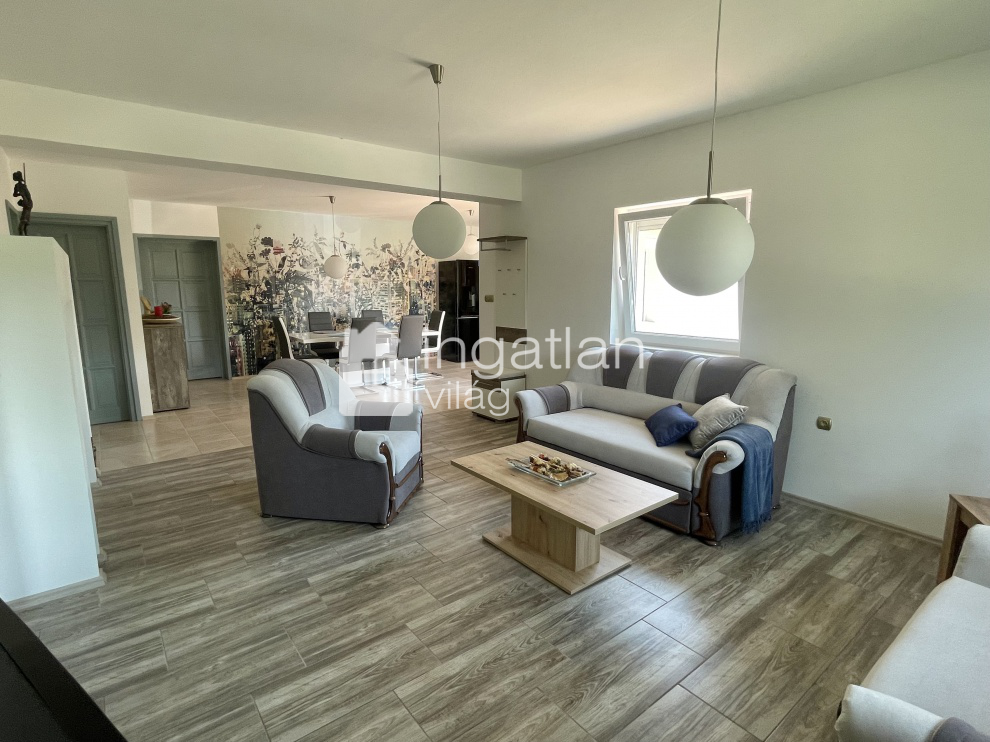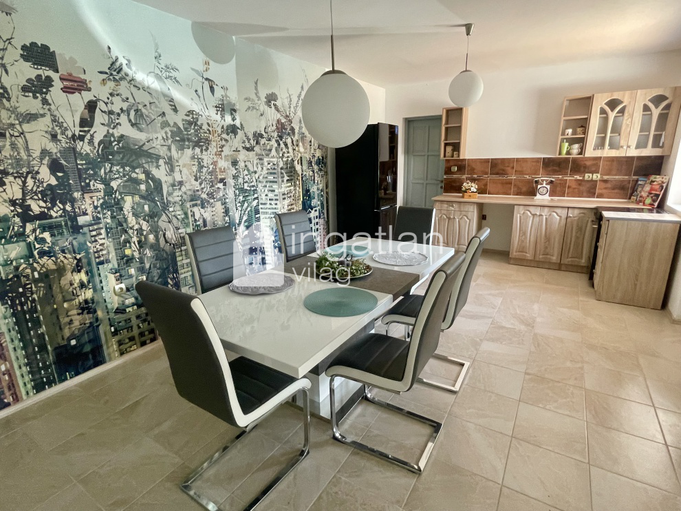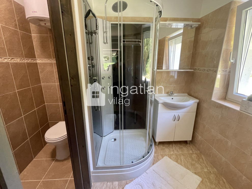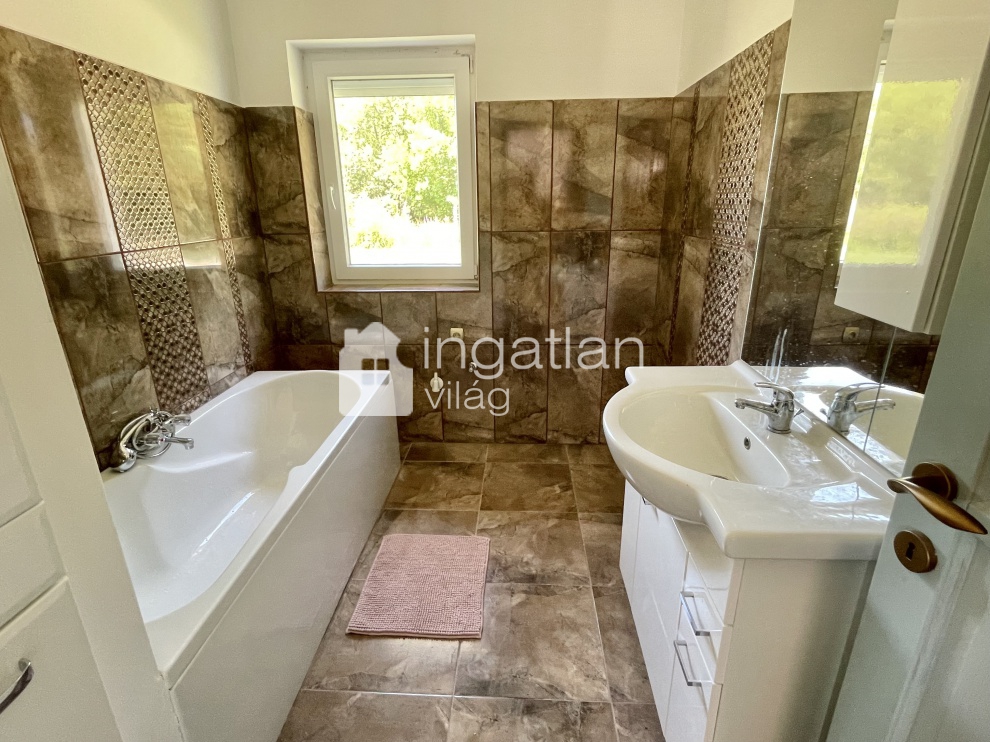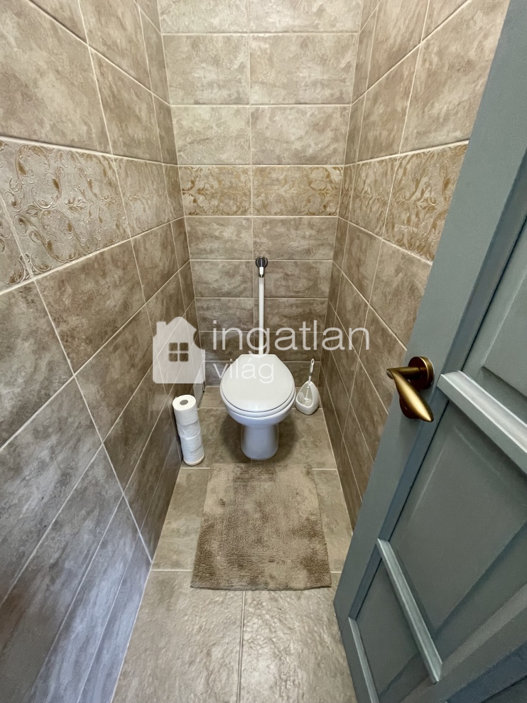 A ház alapterülete 140 nm, melyen amerikai konyhás nappali, hálószoba, kádas fürdőszoba, külön WC, DUPLA GARÁZS kapott helyet. Az ingatlan úgy lett kialakítva, hogy a ház másik részén külön bejáratú rész lett kialakítva, ahol előszoba és két szoba található, mindkettőben fürdőszobával és vendég WC-vel rendelkezik.