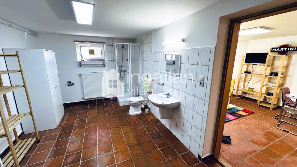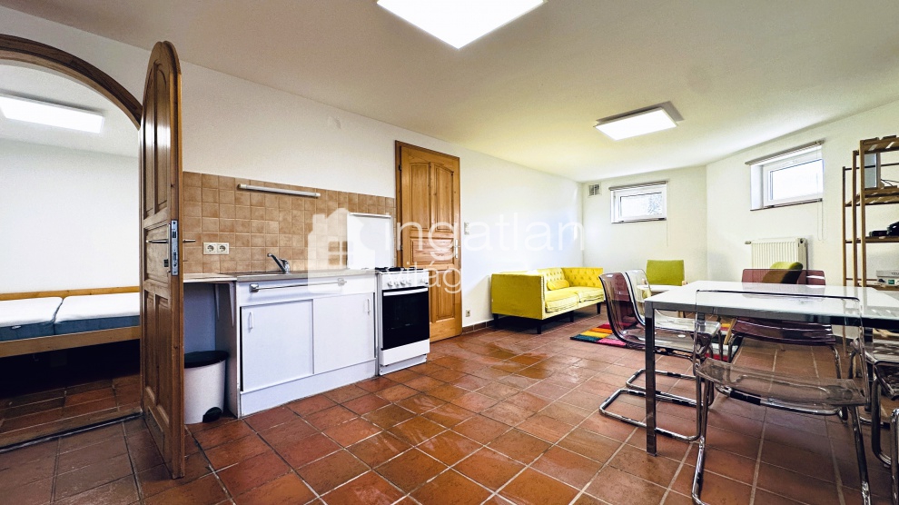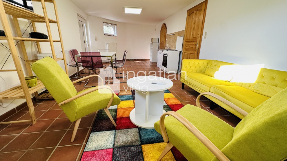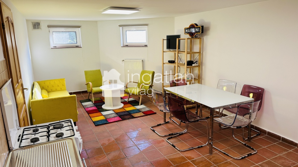 A szuterén szinten vendégek fogadására alkalmas lakás található, melyben konyha, étkező, nappali, hálószoba és fürdőszoba került kialakításra.
