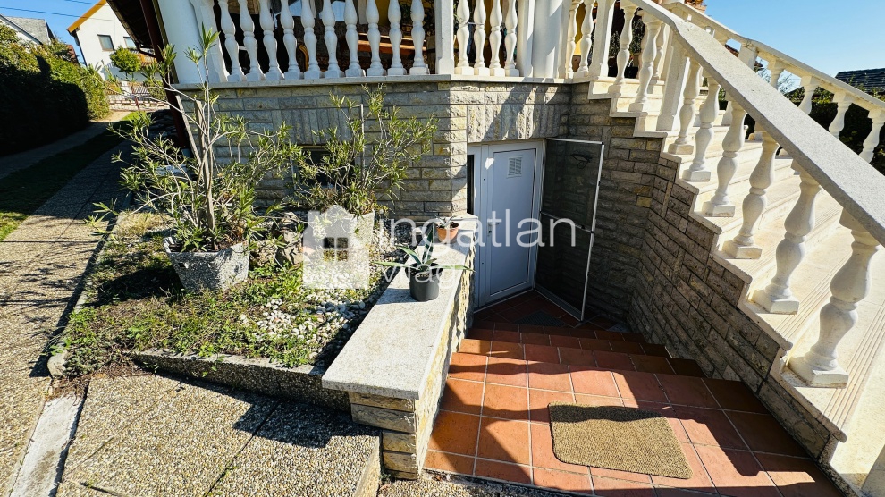 A földszinti részen előtér, amerikai konyhás nappali és három szoba kapott helyett. A nappaliból a NYUGATI TÁJOLÁSÚ FEDETT teraszra léphetünk ki, ahonnan lépcső vezet a gondozott kertbe.