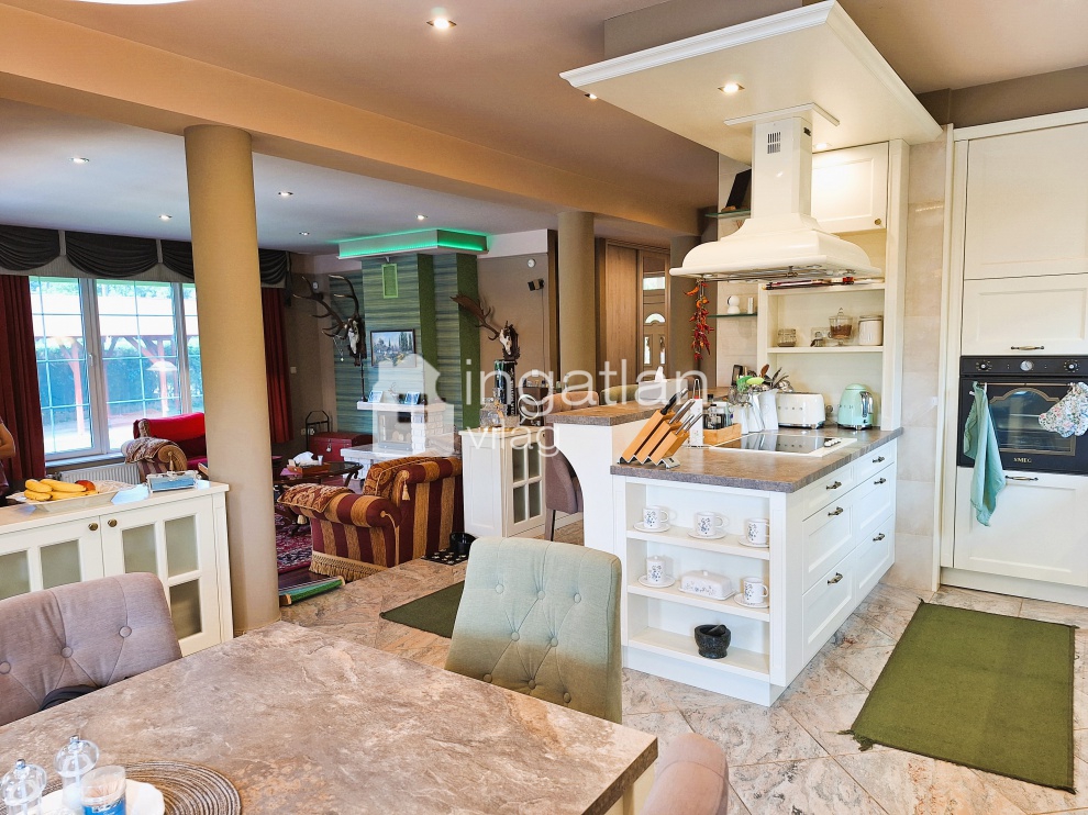 Riasztórendszer, hűtő-fűtő klímák az emeleten, épített kandalló a nappaliban, nagy teljesítményű gázkazán radiátoros fűtéssel.