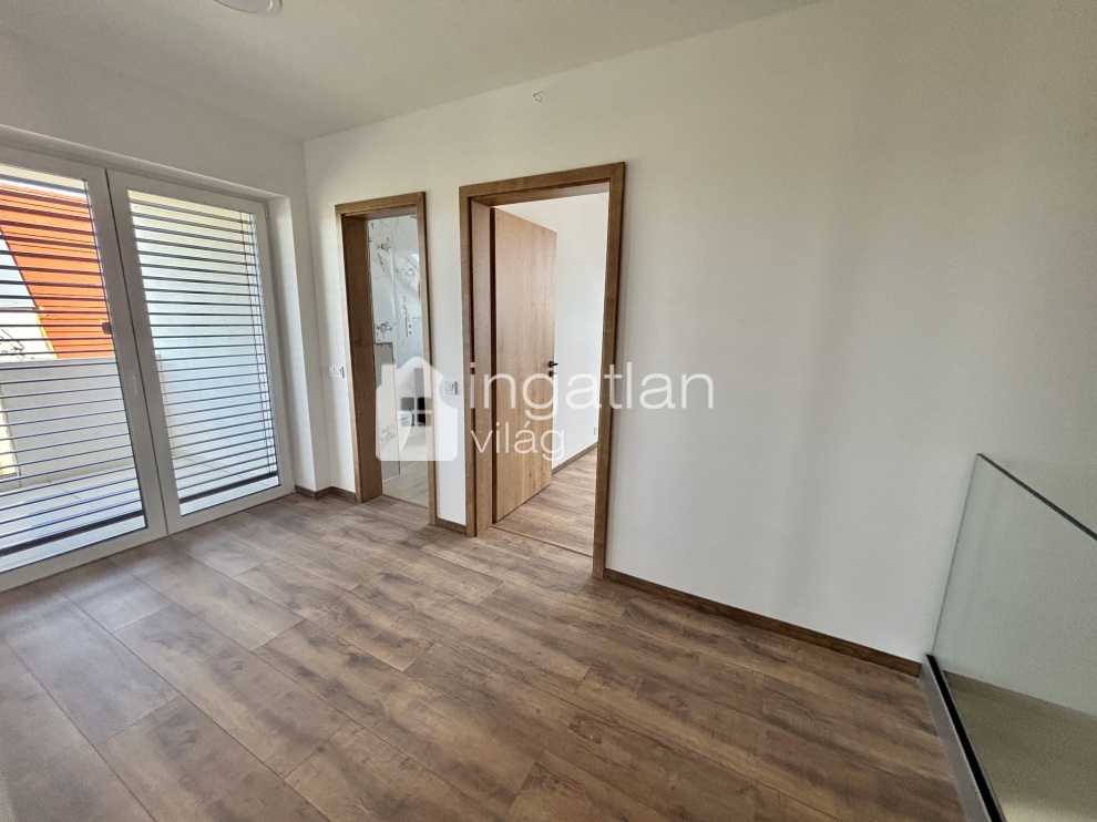 Az emeleten két déli fekvésű, erkélyes, PANORÁMÁS szoba, fürdőszoba és egy északi tájolású gardróbos, fürdőszobás hálószoba került kialakításra.