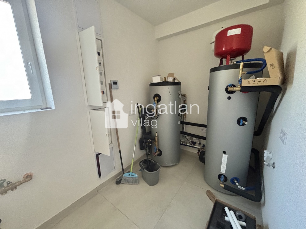 A ház fűtését ENERGIATAKARÉKOS HŐSZIVATTYÚ szolgáltatja, hűtés KLÍMÁVAL történik.